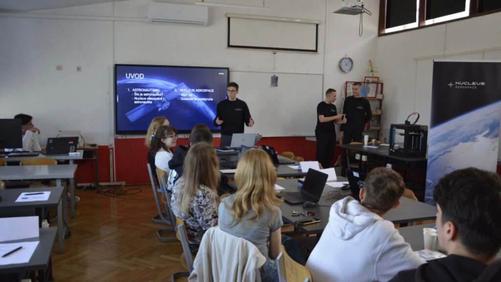 U sklopu Dana otvorenih vrata Gimnazije Velika Gorica, tim Nucleus Aerospacea organizirao je interaktivnu radionicu za sve učenike zainteresirane za znanost, tehnologiju i svemirska istraživanja. Cilj radionice bio je upoznati učenike s našim projektima, tehnologijama koje koristimo i praktičnim aspektima rada u svemirskoj industriji.